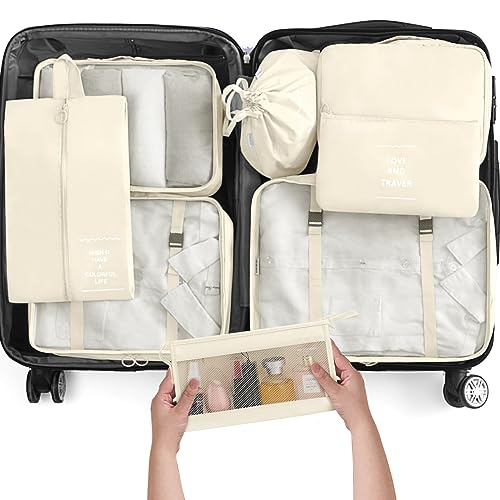 KPX 8 Set Packing Cubes for Travel, Luggage Packing Organizers Accessories Large Toiletries Bag for Clothes Shoes Cosmetics